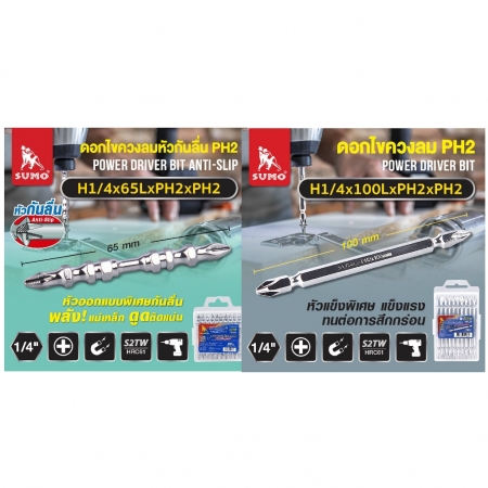 ดอกไขควงลมหัวกันลื่น SUMO H1/4x100LXPH2XPH2 (ยาว)